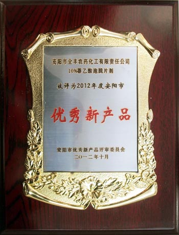 全豐集團(tuán)10%萘乙酸泡騰片劑榮獲2012年度“安陽市優(yōu) 秀新產(chǎn)品”