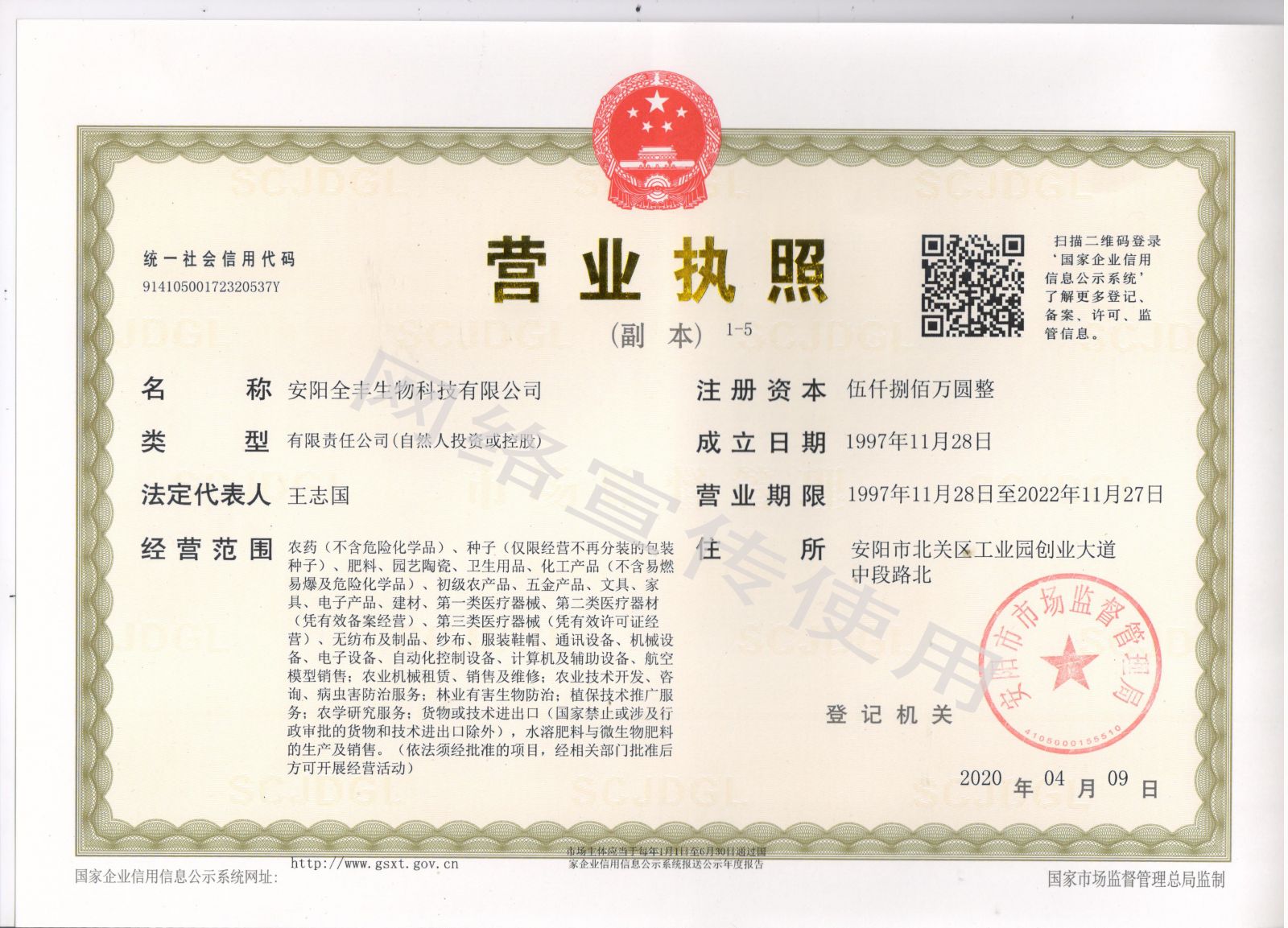 安陽(yáng)全豐生物科技有限公司營(yíng)業(yè)執(zhí)照