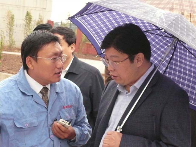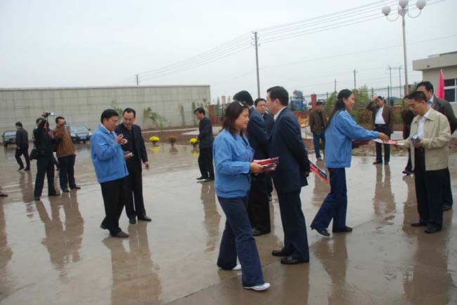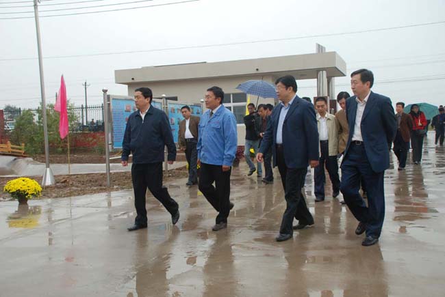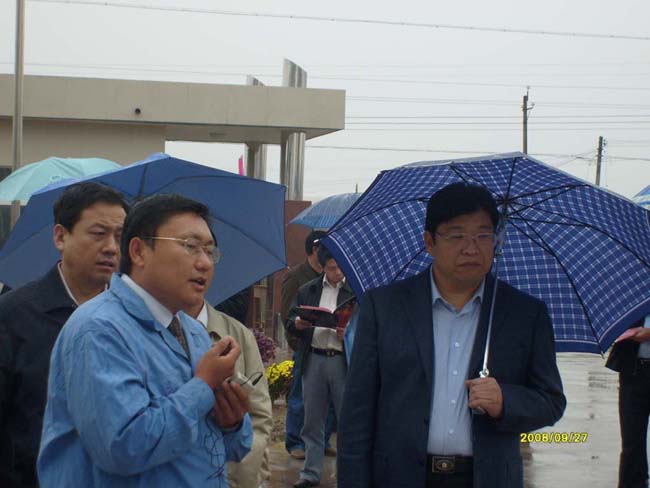 2008年9月27日上午,安陽市委書記張廣智、市長張笑東和市政協(xié)主席趙微等領(lǐng)導(dǎo)率領(lǐng)市有關(guān)部門一行人冒著霏霏細雨到我公司考察指導(dǎo)工作。