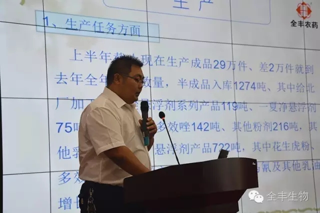 全豐集團(tuán)制劑分公司張曉林就安陽(yáng)全豐上半年的生產(chǎn)和銷售情況向大家匯報(bào)