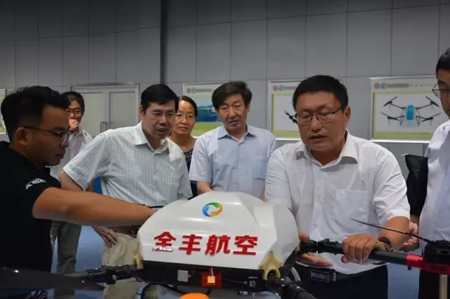 全豐生物科技有限公司董事長王志國、副總經理徐雪松陪同參觀了全豐生物研發(fā)中心、航空植保生產車間、無人機展廳、植保無人機整機實驗室、遙感遙測實驗室、精準施藥實驗室、全豐多功能會議室。
